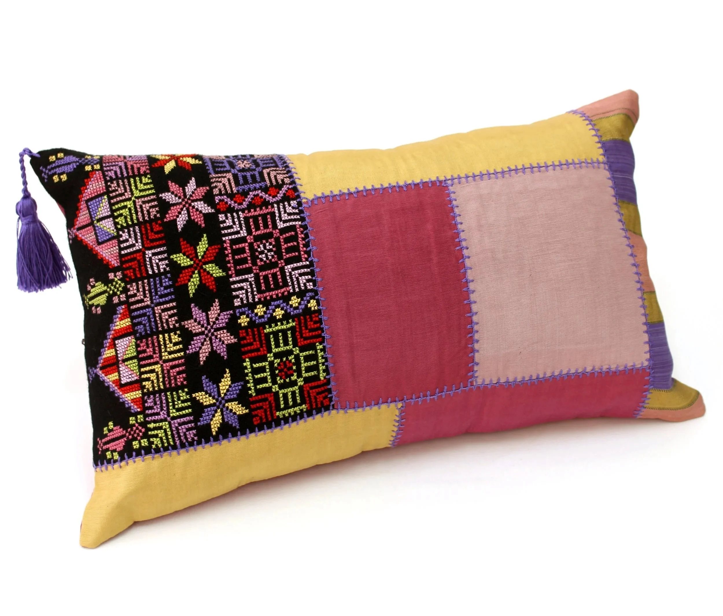 Patchwork with handmade cross-stitch Palestinian embroidery